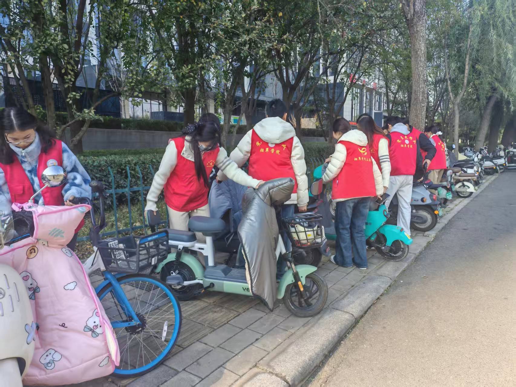 实践锻炼环节,聚焦宗旨意识与担当精神的培育,学员们主动组建志愿服务队,深入龙子湖地铁站周边区域,开展“携手清理盲道,共创文明通行”主题志愿活动。活动现场,大家分工协作、积极投入,细致清理盲道上的烟头、纸屑等障碍物,耐心整理占道停放的非机动车,全力营造安全、畅通的无障碍通行环境。此次服务不仅切实改善了地铁站周边的公共设施状况,更以实际行动传递出对特殊群体的关怀与尊重,展现出青年发展对象服务社会、担当使命的良好风貌。