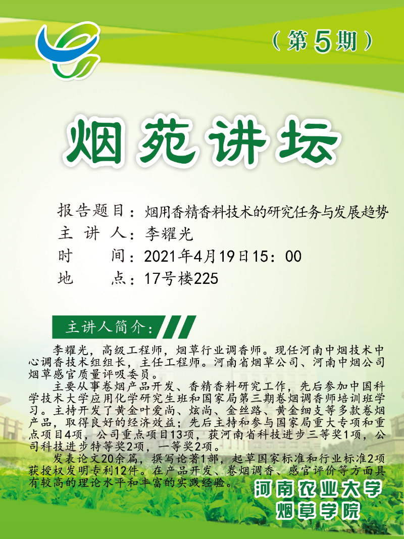 烟苑讲坛第5期——烟用香精香料技术的研究任务与发展趋势