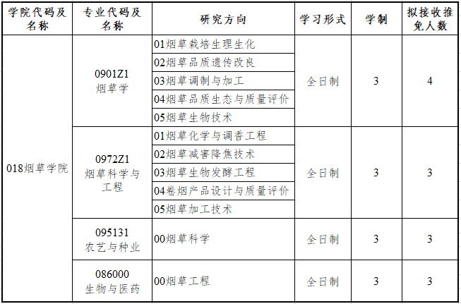 1.复试采用线上、线下相结合的方式进行,具体复试时间和地点另行通知。复试内容包括烟草专业知识考核与外语能力考核以及科研能力考核。