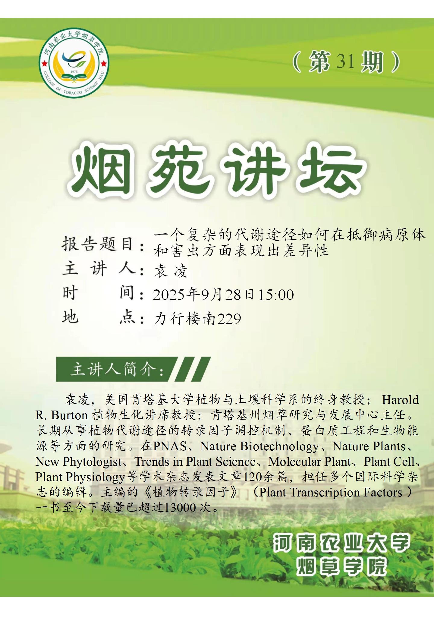 报告题目:一个复杂的代谢途径如何在抵御病原体和害虫方面表现出差异性