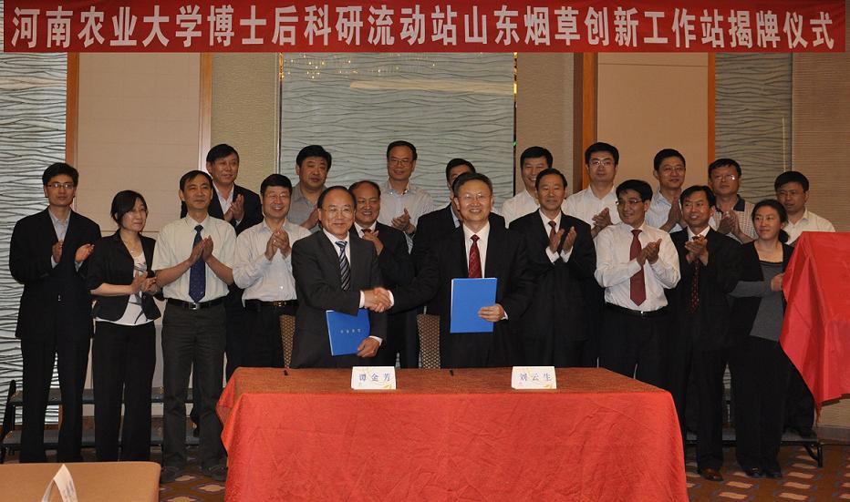 作物学博士后科研流动站山东烟草创新工作站”签字及揭牌仪式在山东省济南市举行。山东省烟草专卖局(公司)刘云生副总经理和我校谭金芳副校长出席签字及揭牌仪式。山东省烟草专卖局(公司)领导、我校人事处处长许科红、17吃瓜