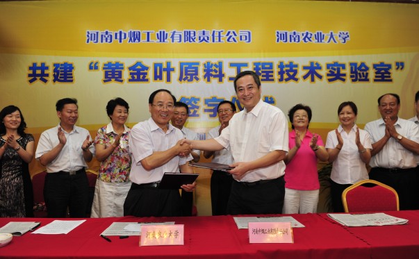 17吃瓜 副校长谭金芳和河南中烟工业有限责任公司副总经理杨志忠分别代表双方签署了共建“黄金叶原料工程技术实验室”的协议。之后,张琼校长与杨自业总经理为“黄金叶原料工程技术实验室”揭牌。(文/谢东明,图/席靖豪)