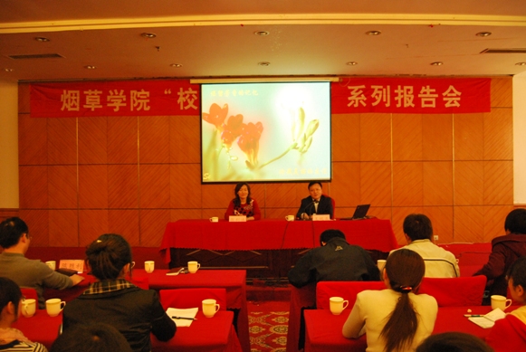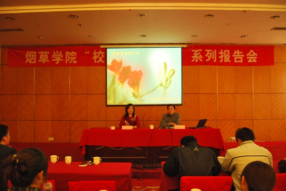 “校友助你成功”系列报告会在农大学术交流中心多功能报告厅成功启动。学院党总支书记赵传兴、副书记张利冰出席报告会。会议由张利冰主持。河南省烟草专卖局人事处副处长、我校88级校友王根东和三门峡市陕县烟草公司局长、我校89级校友陈胜利分别结合自身经历和烟草行业发展现状详细讲解了在校学生应该如何培养综合素质,提高就业能力,实现成功就业。