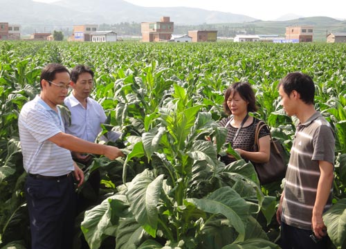 2011年7月31日至8月1日,许自成副院长、符云鹏副教授、宋朝鹏博士深入毕节地区公司秀水中海烘烤工场,从温度的调控等方面细心现场指导散叶密集烘烤;又查看了畜——沼——烟循环烟草、秀水生态肉牛养殖场;对河南农大17吃瓜 李炜、法鹏飞负责的“植物生长调节剂对烤烟上部叶发育及品质的影响”课题进行了指导;对学院研究生牛路、陶金红、孙小伟负责的“毕节特色质量风格形成及化学基础研究”,云烟87、云烟97、毕纳1号试验田查看并细心指导。