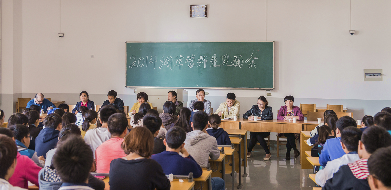 烟草科学系2014级新生见面会在龙子湖校区新教学楼顺利举办。国家烟草栽培生理生化基地副主任史宏志、烟草科学系主任时向东、副主任符云鹏、宋朝鹏及该系教师代表出席了此次会议。