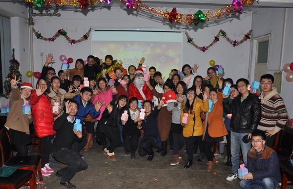 伴随着曼妙的音乐,活动进入了“一句真心话”环节。每个同学走上台前,道出了研究生开学半年来的亲身感受,真情实意、质朴无华的言语打动了每一位同学。“圣诞老人”也在每位同学讲述结束后,为大家送上了平安夜的祝福。联欢会以合唱《朋友》结束,回首过去半年来的点点滴滴,同学们有不舍、也有感动。