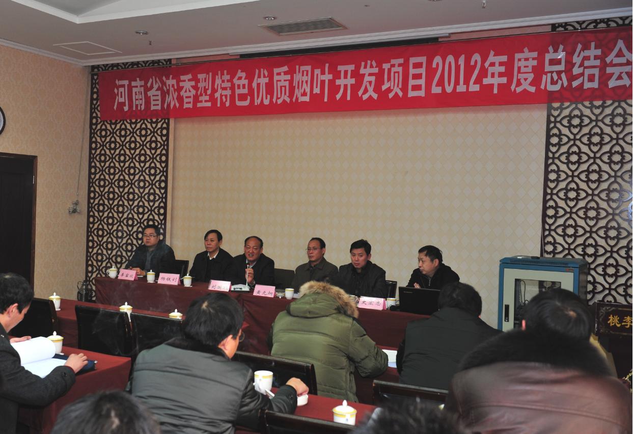 黄元炯研究员在致辞中传达了浓香型特色优质烟叶开发项目领导组副组长、河南省烟草公司李俊成副总经理对本次会议的关注和期望,并要求各地(市)级烟草公司在项目组的带领下认真完成项目的各项研究和开发工作,真正实现项目的既定研究目标和开发成效。各地(市)级烟草公司代表就本产区2012年的工作落实、试验布置、研究结果等做了逐一汇报,并就项目实施中存在的一些实际问题提出了宝贵的意见和建议。