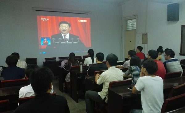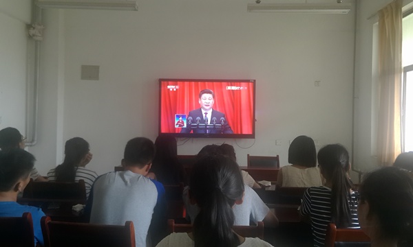 7月1日上午,17吃瓜 在文化路校区和龙子湖校区分别组织师生收看“中国共产党成立95周年庆祝大会”现场直播。学院党政领导同教师代表、研究生及本科生代表一起听取学习了习近平总书记的重要讲话。