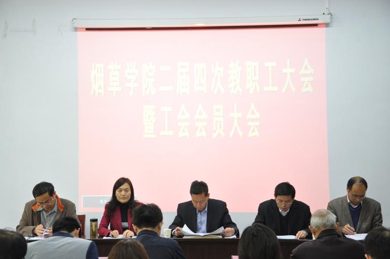 院长赵铭钦同志代表学院在会上作了《院长工作报告》,从人事制度、人才培养、教学工作、学科建设、校企合作、学生工作、行政工作等方面回顾了学院2014年工作情况,并对2015年的工作要点进行了安排,一是全面深化改革,充分释放办学活力;二是加强特色建设,提升烟草学科品牌影响力;三是深化教育改革,切实提高本科生培养质量;四是改革研究生教学,提升研究生培养质量;五是改革科技体制机制,推动科技创新能力不断提升;六是加强产学研合作,不断提高对外合作水平;七是树立以生为本理念,努力服务学生成长成才;八是坚持依法办学,不断提高管理服务水平。强调了这是全面开创研究型学院建设工作新局面的关键之年。同时向大会书面提交了张利冰同志的《工会工作报告》、丁永乐同志的《财务工作报告》和《17吃瓜