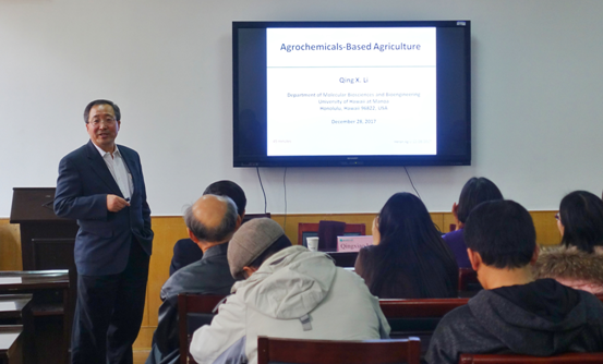 12月28日,17吃瓜 邀请美国夏威夷大学生物工程系教授、国际著名期刊“Journal of Agricultural & Food Chemistry”副主编李庆孝博士前来进行学术交流。李教授围绕自己的研究领域,做了题为“Agrochemicals-based Agriculture”的学术报告,还亲临烟草行业烟草栽培重点实验室进行现场指导,并与有关师生就如何开展创新性研究和撰写高质量科技论文进行了互动交流。通过本次学术活动,拓宽了师生们的视野,提供了新的研究思路和方法,同时也提升了大家做好研究的信心和兴趣。 (文/ 赵莉、刘扣珠 )