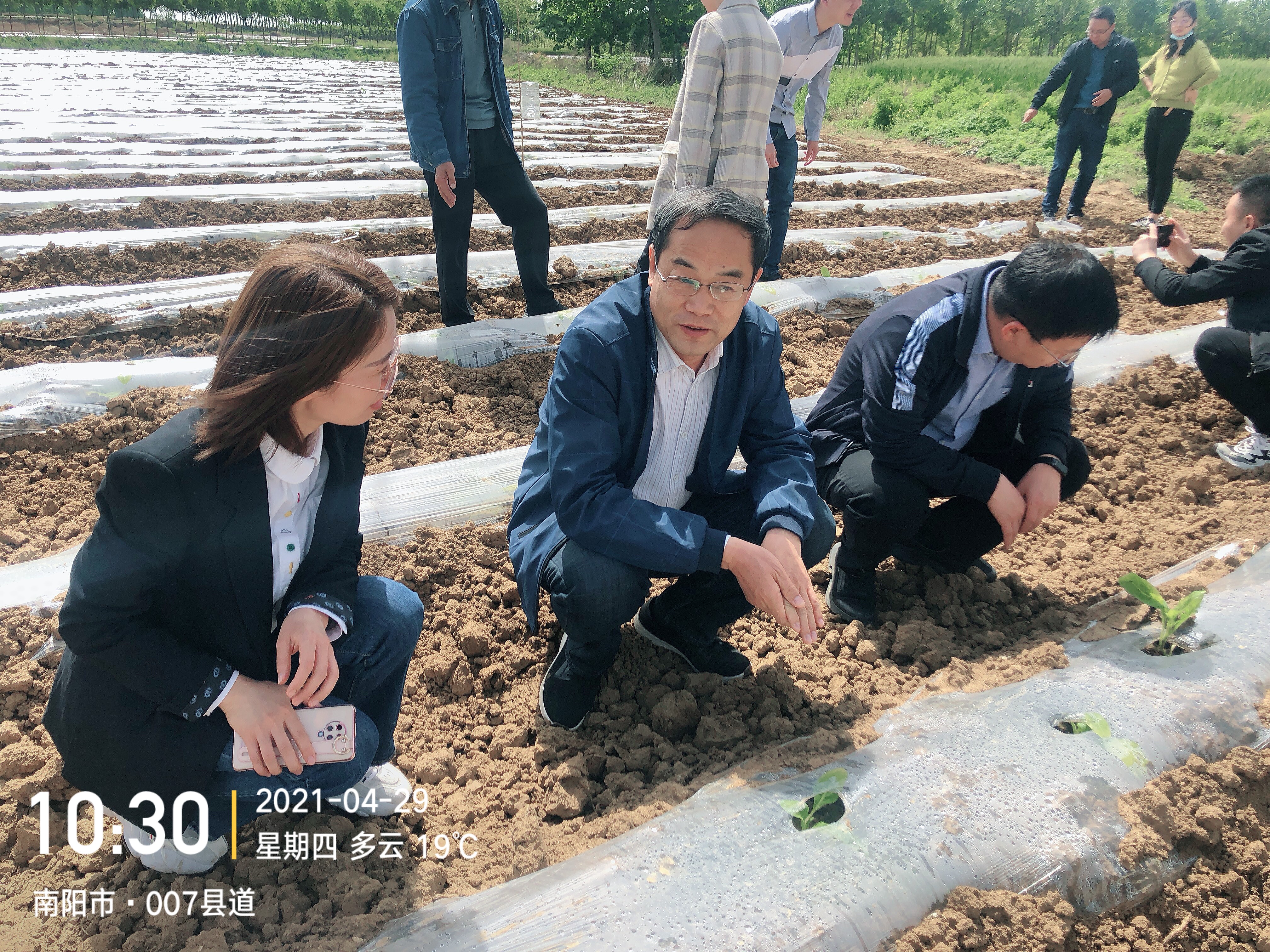基地沟通会结束后,工商研三方还一同前往方城广阳基地,考察大田烟苗移栽情况,指导小苗膜下移栽的栽后管理工作。(文/图:贾玮、韩丹 签审/时向东)