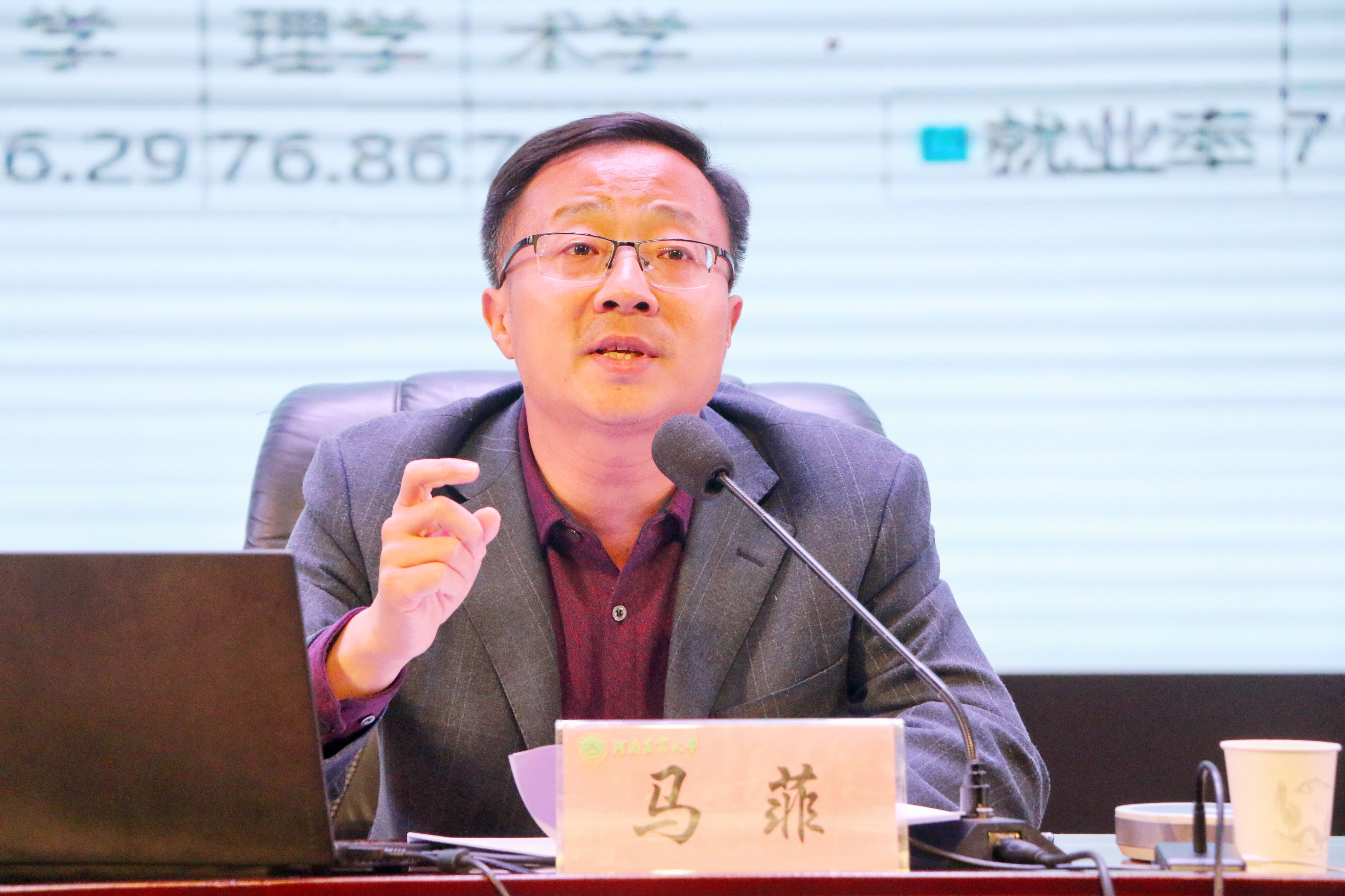 马菲从高等教育普及化、就业机制市场化、学生诉求个性化和技术手段信息化四方面详细介绍了大学生当前就业形势与政策,通过详实的数据分析了在全球化时代和社会转型时期,大学生就业所面临的机遇和挑战。马菲围绕“何为职业规划”,向参会学生提出三点希望:一是要坚守初心,树立远大志向,心怀家国天下,把个人理想追求融入党和国家事业之中。二是要做好选择,科学规划人生,引领未来之路,平衡好高度、深度、宽度和温度四个人生维度,不盲目从众,走好自己的人生路。三是要坚持不懈,成功源于坚持,奋斗成就梦想,唯热爱与奋斗可抵岁月漫长,寄语广大青年学生做新时代的追梦人。