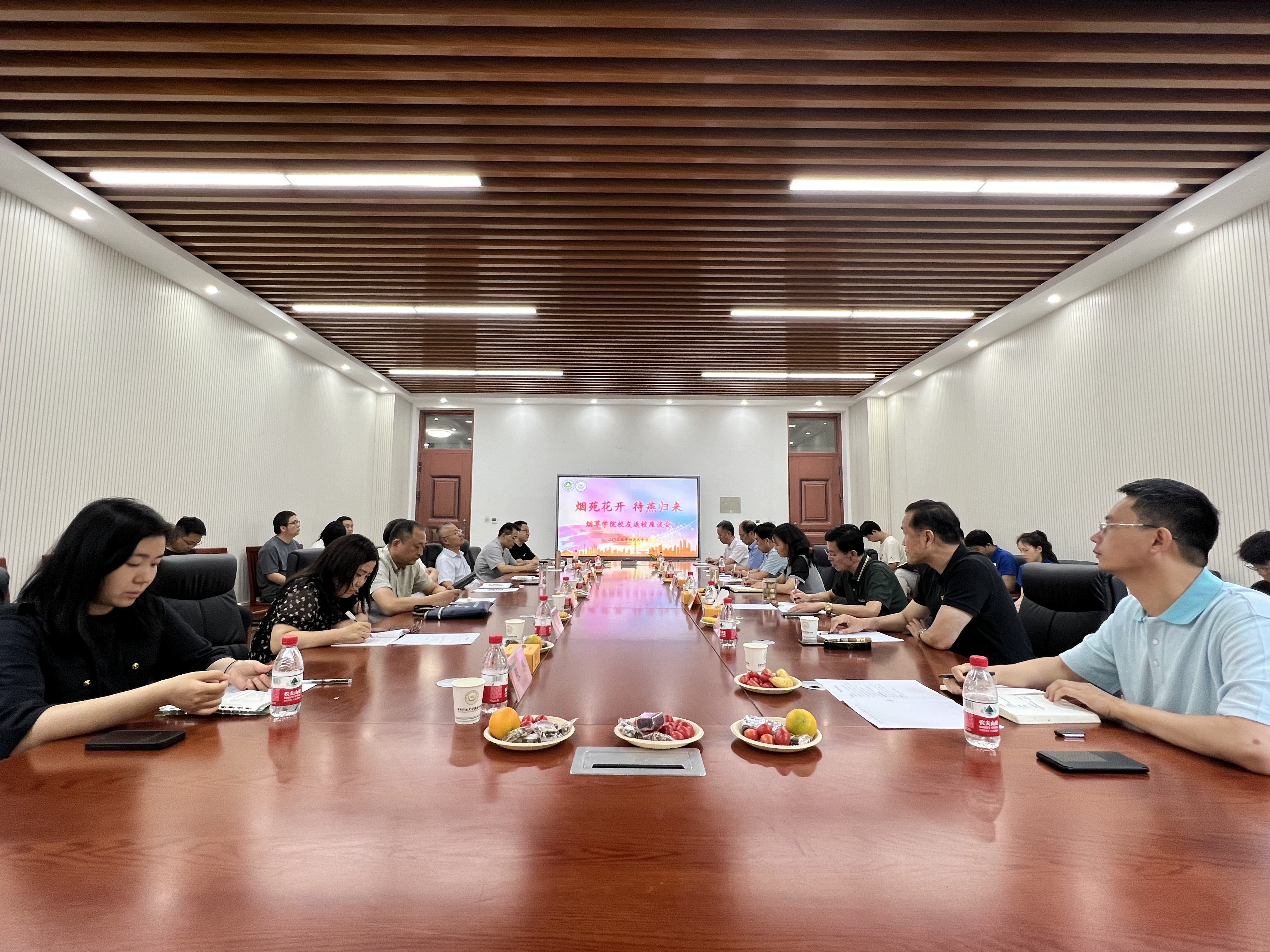 于龙子湖校区召开了校友座谈会。河南省烟草专卖局(公司)总农艺师宋守晔、南阳烟草公司技术中心主任(高级农艺师)程玉渊、河南中烟原料采购中心技术主任(高级农艺师)段卫东、重庆市烟草公司科技处副处长马啸、四川省烟草公司高级农艺师秦艳青、广西中烟高级农艺师齐永杰、美国环球烟叶公司中国区农艺部副经理张腾,学院领导老师及学生代表参加了会议,会议由院党委副书记史军伟主持。