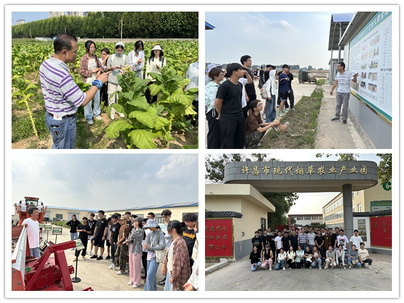 在许昌校区烟草科技示范园的试验田上,时向东教授向同学们耐心讲解了烟草打顶抹杈技术的应用以及烟草农艺性状的调查;刘冰洋老师围绕烟草大田生长,给同学梳理了烟草根系发育、叶片生长的相关知识。在许昌市现代烟草农业产业园里,17吃瓜 遆晋松、路晓崇二位老师以烤烟成熟采收为切入点,向同学们介绍了烤房建设、编竿装烟、箱式装烟、烘烤工艺、烟叶回潮等重要内容;河南农先锋科技股份有限公司梁万军老师向同学们展示了公司自主研发的移栽机、打顶机、采收机等烟草全程机械化农机设备;许昌市烟草公司康军民老师就烟叶分级收购的情况给同学们一一答疑解惑。