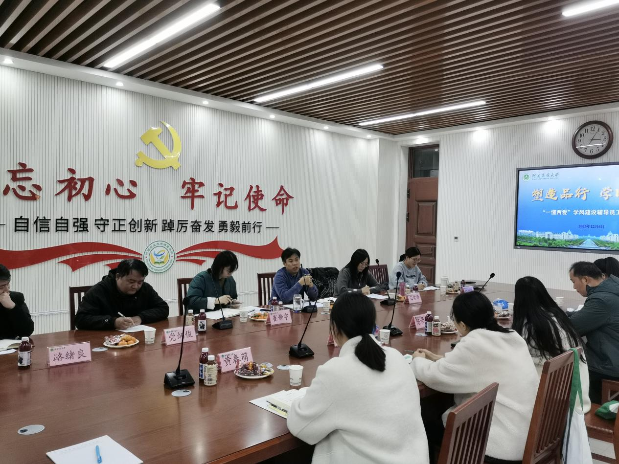 最后,资源与环境学院党委副书记陈景红作总结讲话,她强调学风建设作为立德树人的基础,直接关系教育的成败,新形势下转变工作思维和方式,既是时代发展和人才培养的要求,也是实现教育创新发展的现实要求。此外,她指出要强化问题导向,充分发挥“传帮带”和朋辈引领作用,在学生工作树立齐抓共管育人理念,完善“三全育人”体系,形成育人合力,为学生成长成才营造好气候、创造好生态。