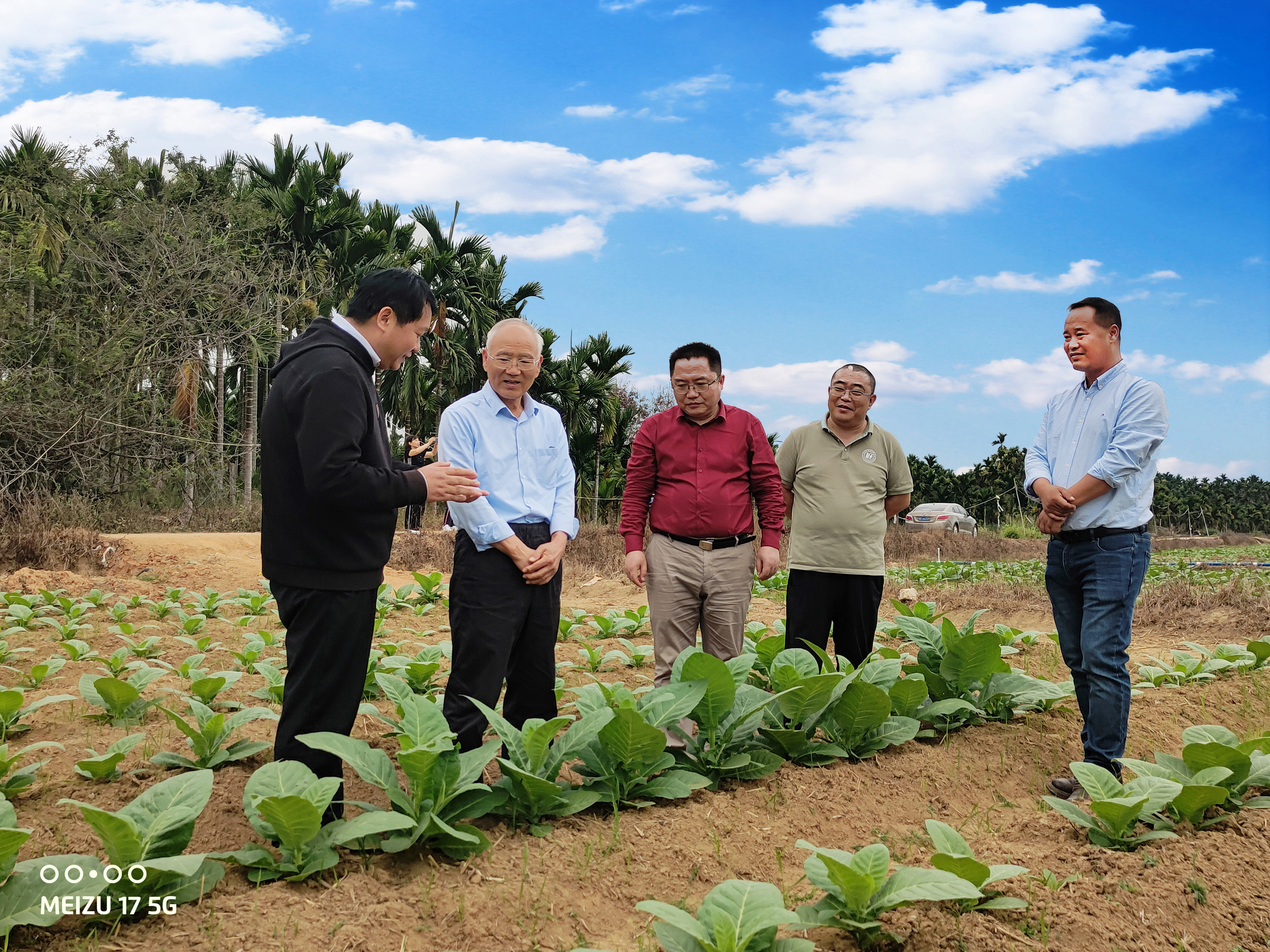 谭金芳一行先来到位于大安镇雪茄烟叶育苗基地,现场查看了育苗设施。随后到雪茄烟叶种植示范园区,深入调研了雪茄烟株长势长相,对雪茄烟叶基地的研究内容和生产技术管理给予了高度评价,并提出三点建议:一是深入分析乐东区域生态资源特点,充分利用和挖掘“天然独特”的生态资源潜力;二是围绕土壤健康培育,深入开展土壤质量动态分析研究,建立土壤理化及生物学指标图谱;三是对标国际优质雪茄烟叶质量,努力打造成国内外雪茄烟叶种植基地的样板或标杆,助力我国“中式雪茄”高质量发展。