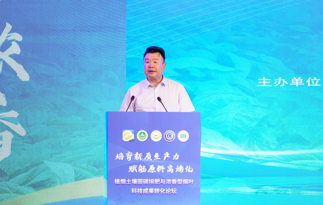 沈其荣院士作了题为《木霉菌及其生物肥料》的主题报告,从“木霉菌作用机制”和“木霉菌生物肥研发”两方面阐述了木霉菌的生防、促生、耐酸机制和木霉固体菌种、木霉生物肥产品制造及其在农业生产中的应用效果。周卫院士作了题为《肥料产业发展趋势与展望》的主题报告。阐述了世界肥料产业发展趋势、肥料技术创新与突破、我国肥料产业发展现状和新阶段肥料产业发展战略等内容,并就加大新型肥料绿色增效、智能化推荐施肥等技术的创新攻关,深入推进水肥一体化技术,促进肥料行业高质量发展等方面提出了具体建议。希望相关科技人员以“发现问题—消减障碍—培肥地力—生态服务”为总体思路,进一步强化土壤固碳培肥、绿色种植等领域的研究,为保障生态安全和农业高质量发展提供强有力的科技支撑。徐明岗院士作了题为《我国农田土壤有机质提升关键技术及生物炭的效用》的主题报告,围绕我国耕地质量现状与突出问题、我国农田长期试验的特征、耕地质量核心指标-土壤有机质提升原理和技术、我国农田固碳增产协同效应、耕地质量与产能提升的未来、长期试验与土壤健康等内容进行了系统阐述。刘国顺教授作了题为《转化浓香型科技成果 提升烟叶市场竞争力》的主题报告,从烟叶成熟期高温强光胁迫增香理论、烟叶生长发育标准系构建、土壤碳氮平衡烟叶增香理论、高碳基土壤修复肥创制、哈茨木霉促生防病和经济效益六方面简要阐述了浓香型特色优质烟叶开发科技成果内涵及成果转化成效。杨永锋高级农艺师作了题为《土壤碳氮调节对烟叶品质的影响及工业验证》的报告,认为土壤碳氮平衡、烟株营养平衡、最适成熟度是影响浓香型烟叶品质形成的关键调控因素,土壤碳氮调节技术实现了烟叶外观质量、物理特性、化学成分和感官品质的提升。孟军教授作了题为《关于生物炭产业技术发展的思考》的报告,从国内外概况、技术方向和协作途径等方面阐述了生物炭产业技术的现状及发展。