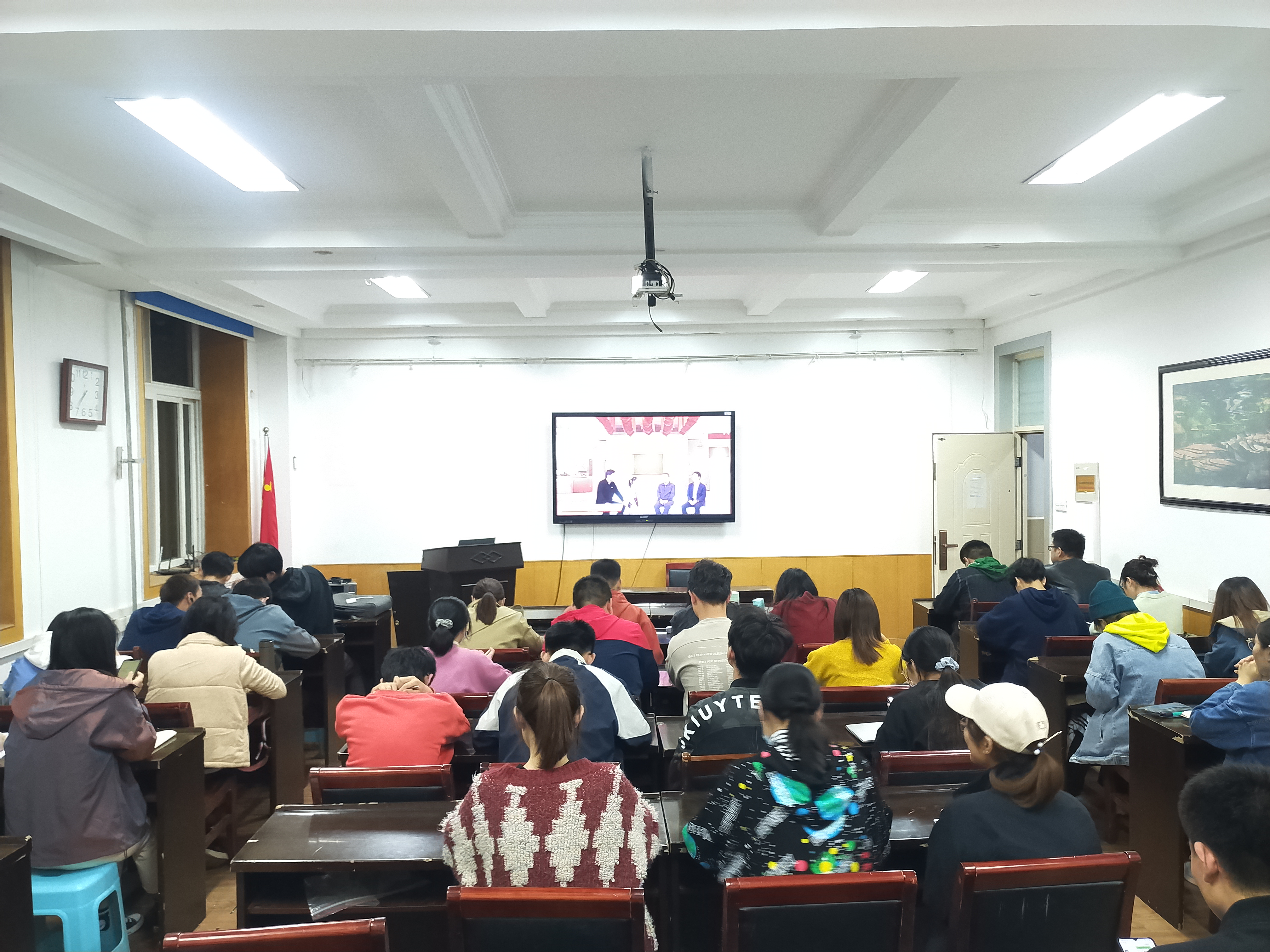 青马班学员们聚精会神观看“致敬抗美援朝”主题云团课