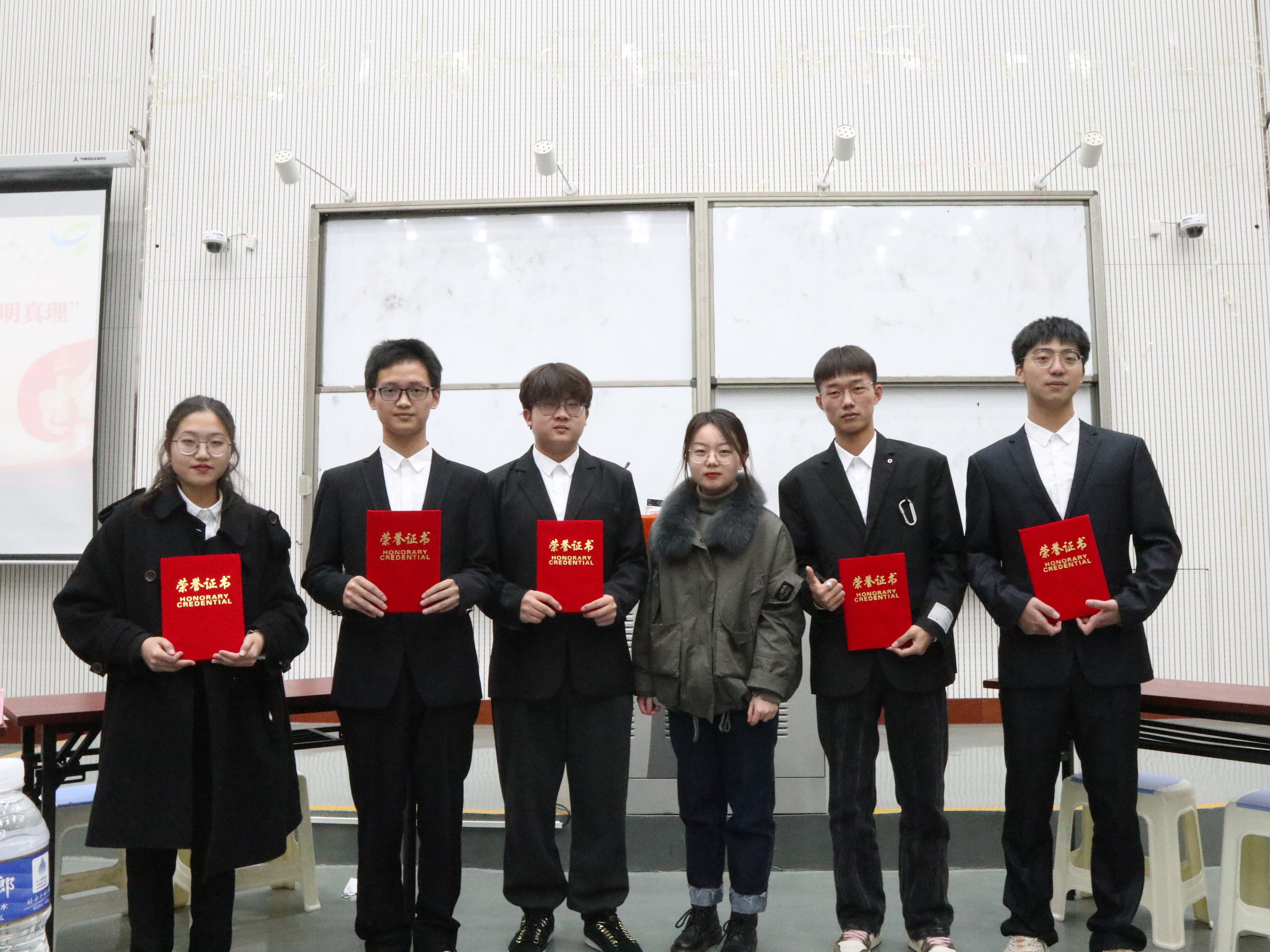 于龙子湖校区大教室四举办“学党史 悟思想 辩是非 明真理”新生辩论赛。辅导员田馥梦、袁鹏雯和学生代表担任评委,21级全体新生参加。