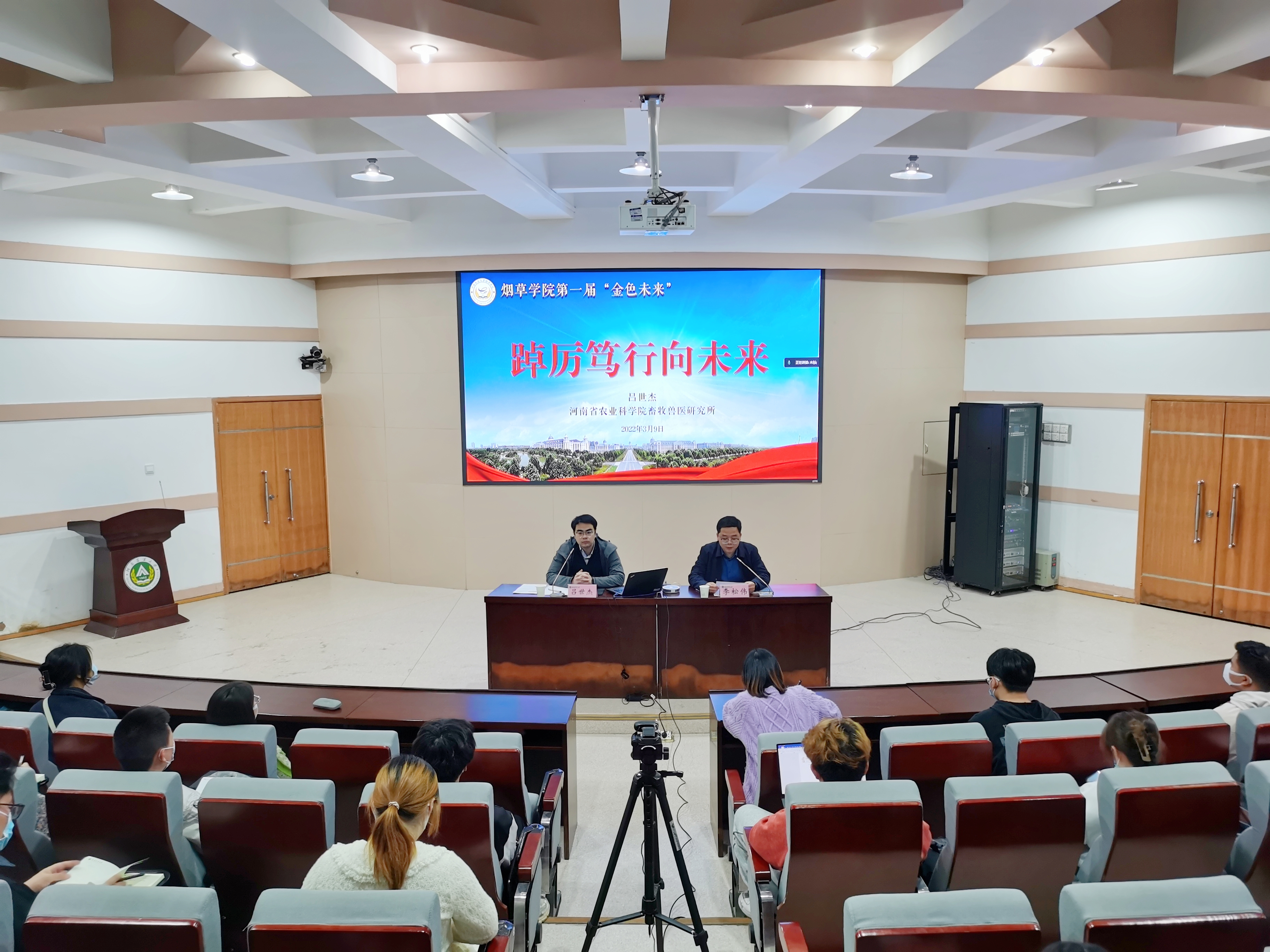 3月9日,17吃瓜 于文化路校区三百人报告厅举办第一届“金色未来”学生干部培训班第二场专题辅导报告。我校2007级校友、原校学生会主席、河南省农业科学院畜牧兽医研究所吕世杰受邀以“踔厉笃行向未来”为题作报告,全体学生干部及21级全体学生参加。团委副书记李松伟主持会议。