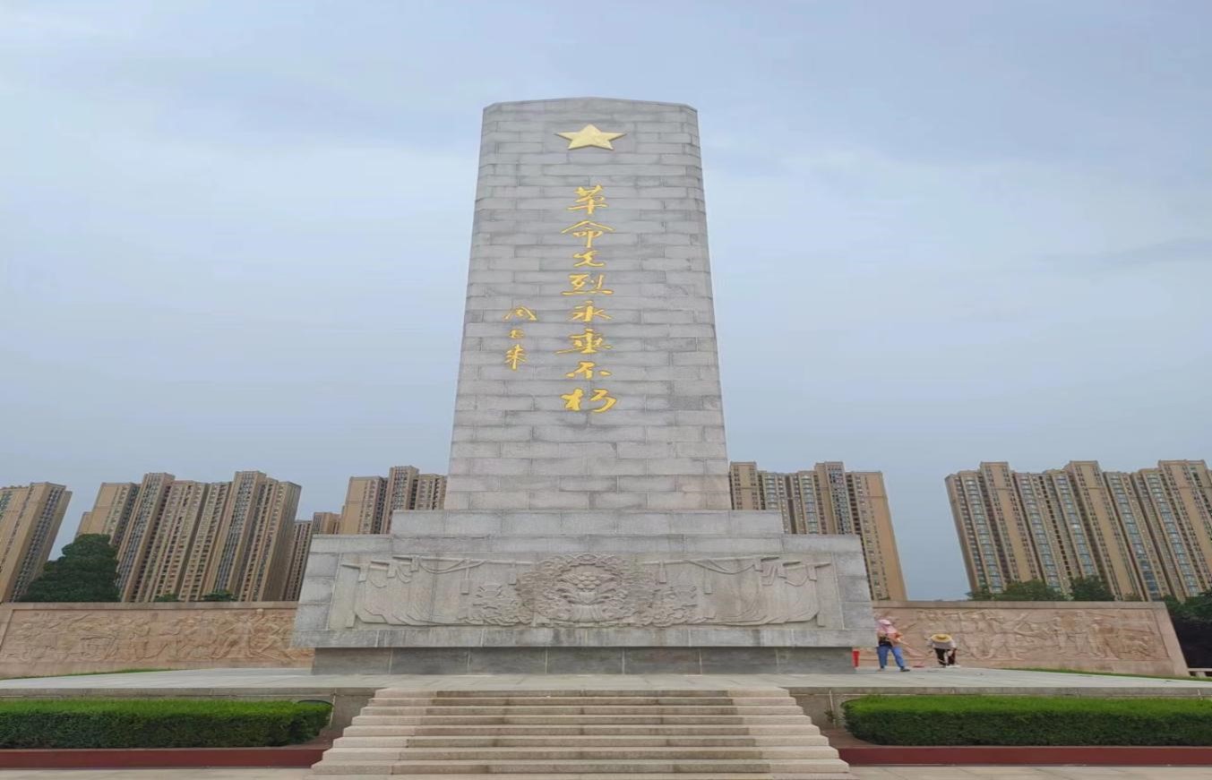 郑州市烈士陵园烈士墓区安葬着在解放郑州战役中牺牲的烈士共88位,其中有55位是无名烈士,成员们不禁肃然起敬。跟随讲解员来到陵园南园区中心位置的革命先烈纪念碑,碑高27米,寓意“二七精神”永远发扬光大,其上还有周总理的题词“革命先烈永垂不朽”。实践团成员们在革命英雄纪念碑前默哀一分钟并拍照留念后绕行纪念碑一周。身为当代青年大学生,瞻仰之余更要以先辈的革命历程为启示,传承红色基因,与革命烈士精神同频共振。瞻仰结束后成员们不仅表达了自己对革命先驱的缅怀之情,更是深刻体会到了伟大革命的历史影响与意义。