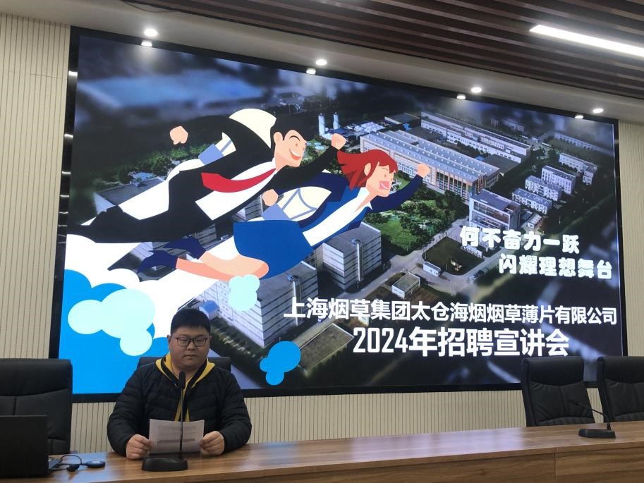 在力行楼南229召开2024年春季校园招聘宣讲会。本次会议邀请到上海烟草集团太仓海烟烟草薄片有限公司人力资源部的王老师为毕业生宣讲企业招聘信息。