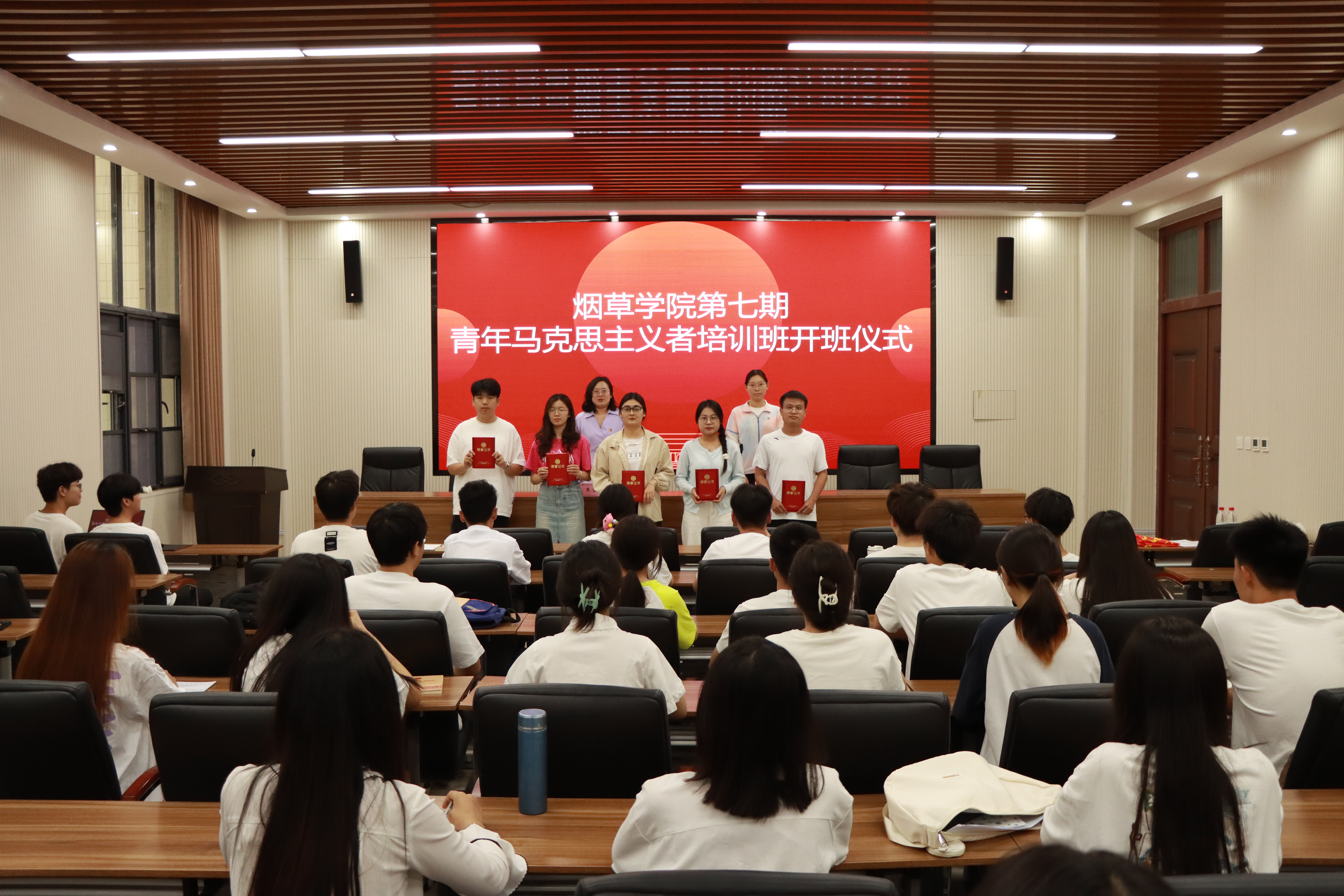 开班仪式在庄严的国歌声中拉开了序幕, 与会领导老师为第六期青马班优秀学员颁发了荣誉证书,并由第六期青马班优秀学员代表王浩宇同学发言。他表示青年一代应承担着为国家、为社会、为人民服务的使命,要为实现中华民族伟大复兴的中国梦而努力奋斗。并寄语全体学员,希望他们不负青春,不负韶华,不负时代,在奋斗中成就青春。李朋洋作为第七期青马班学员代表进行了发言,并郑重承诺要不断坚定共产主义信仰,认真学习马克思主义理论成果,遵守青马班各项规章制度,做到学以致用、知行合一,要脚踏实地、志存高远,为国家贡献青春力量。