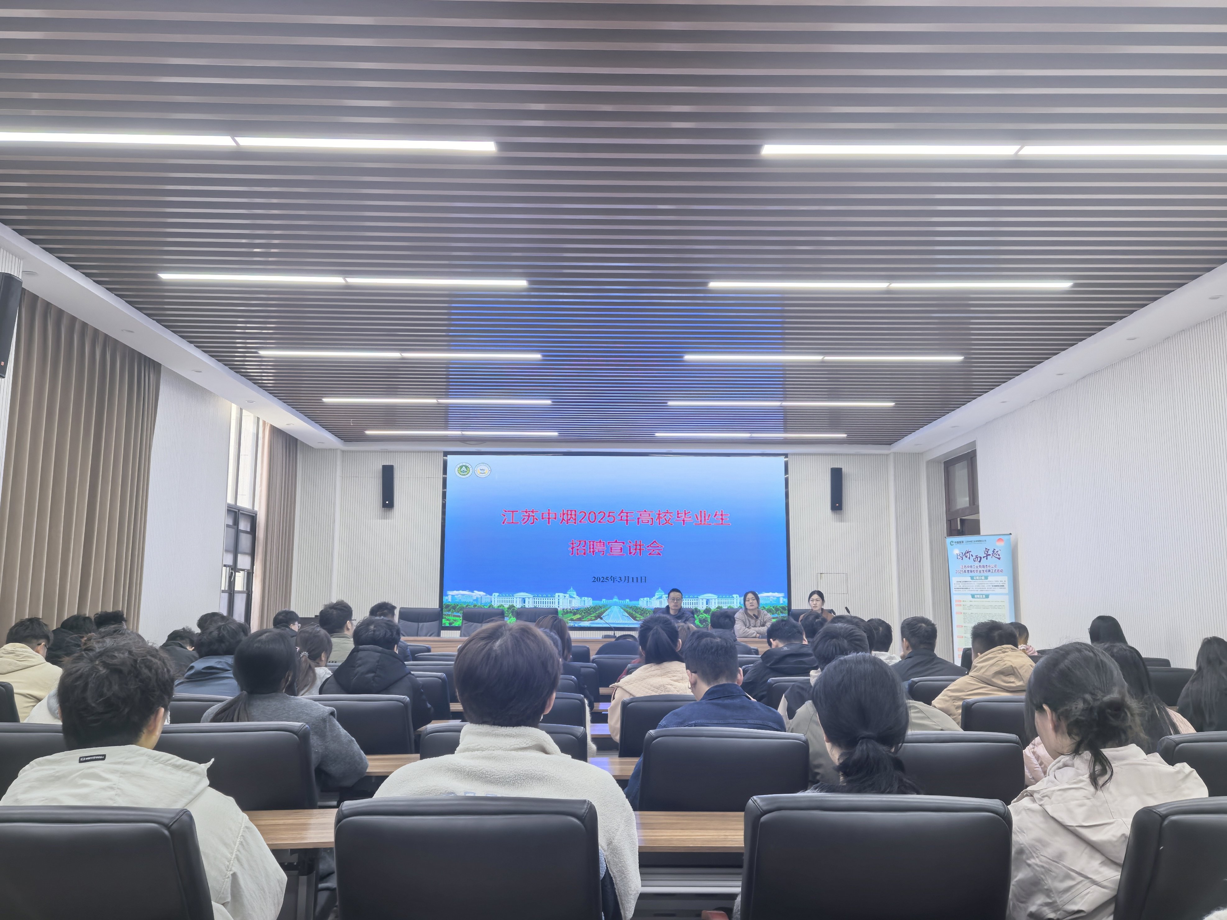 于龙子湖校区第二实验楼南229会议室举办江苏中烟2025年高校毕业生招聘宣讲会。部分2025届毕业生参加会议,会议由江苏中烟工业有限责任公司的全资子公司江苏鑫源烟草薄片有限公司的相关工作人员主持。