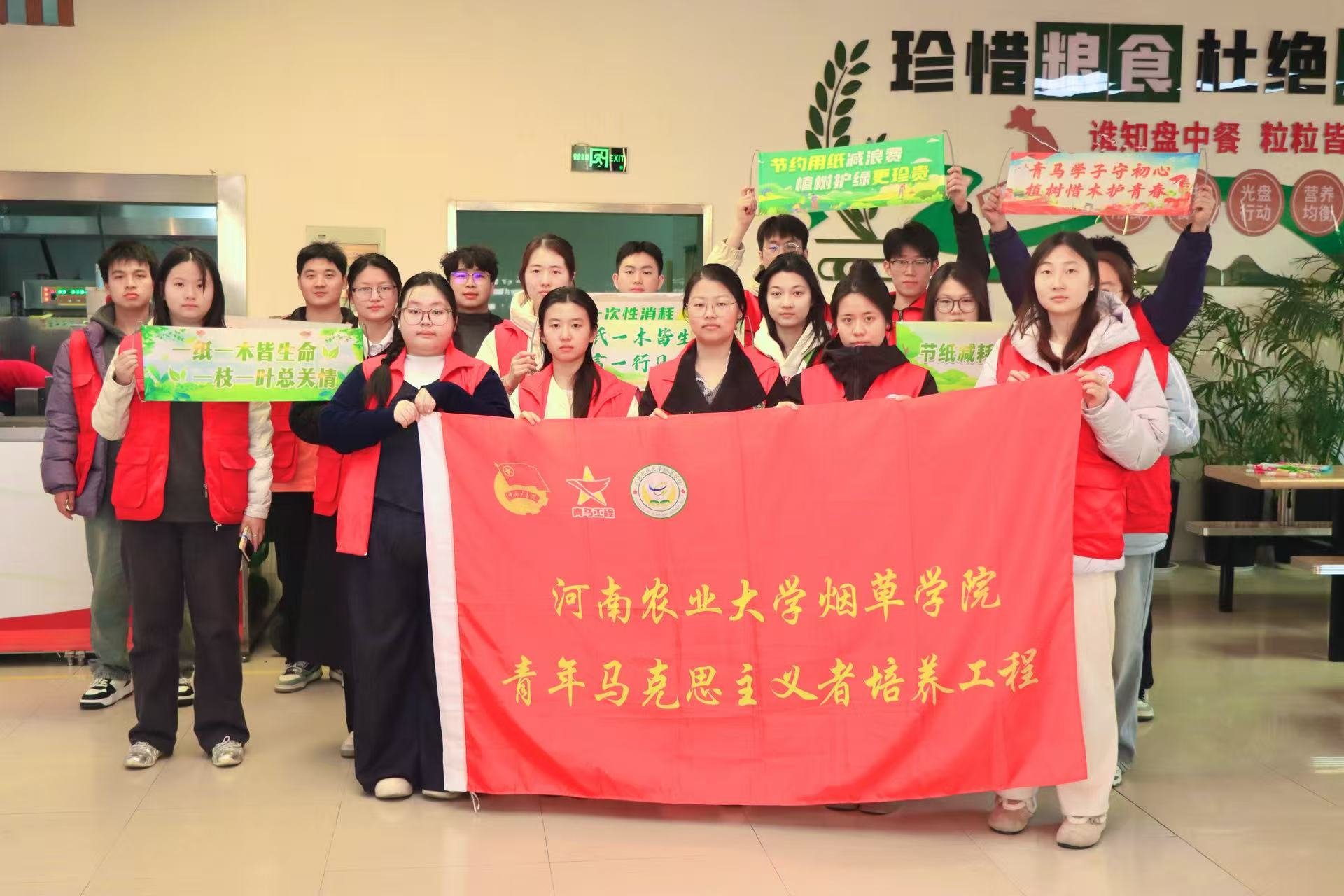 通过院青马班和“白鸽”志愿者协会,组织学生志愿者走进校园餐厅,开展以减少一次性筷子、节约用纸、守护绿色家园为主题的环保宣传志愿服务。